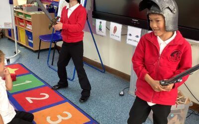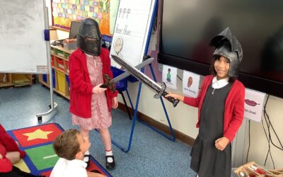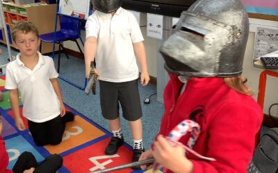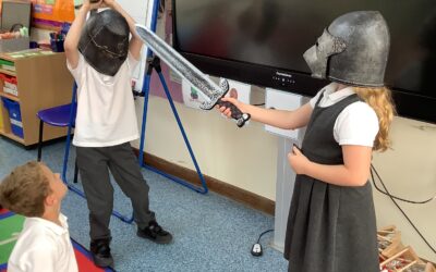 Here are the children enjoying playing knights at the start of our English unit!