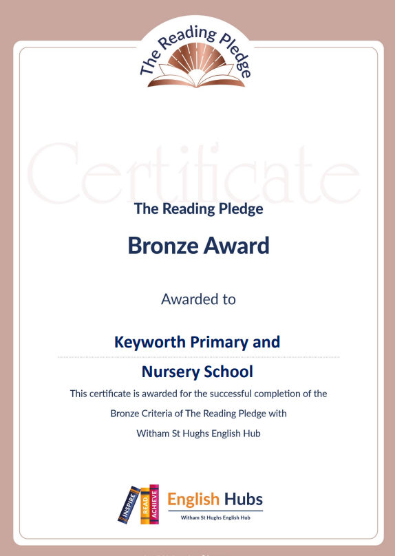 Over the past year we have been working towards our Bronze Reading Pledge in partnership with the Witham St Hughs English Hub. The ultimate aim of the Reading Pledge is to ensure that EVERY child, regardless of their background, needs or abilities, becomes a confident, fluent and enthusiastic reader.